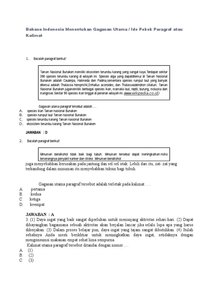 Latihan soal online adalah website yang berisi tentang latihan soal mulai dari soal sd mi sederajat. Play this game to review other. Suatu topik yang dibahas dalam suatu teks dinamakan. 3.1 mencermati gagasan pokok dan gagasan pendukung yang diperoleh dari teks lisan, tulis, atau visual. Kalimat yang menunjukkan gagasan pokok paragraf di atas yaitu…
